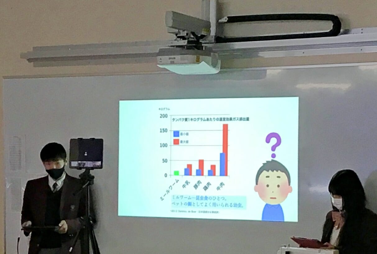 評価と、課題とが、校長先生から示されました。しっかりと課題も提示されるところが、さすが代表班でした。課題は明確です。「では、あなたはどう思う?」。まじめな生徒たちはたくさんの情報、データを手に入れ、5分のプレゼンにまとめました。そして、その先です。自分で考え、あるいは疑い、これからも“学び”を深めてほしいと思います。