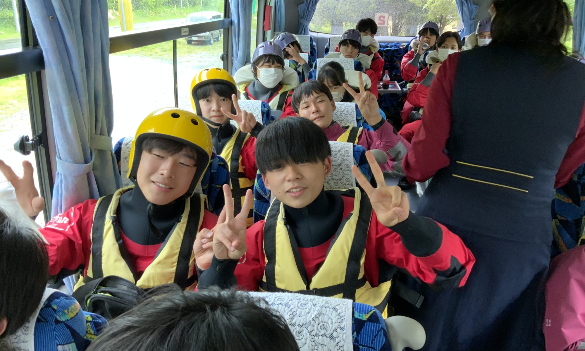 ラフティングは初めての経験でしたが、とても楽しかったです。川下りだけでなく、知らない人と会っても水を掛けあったりして、楽しむことができました。また、チーム6人で団結して行動することができ、とても良かったです。(男子)