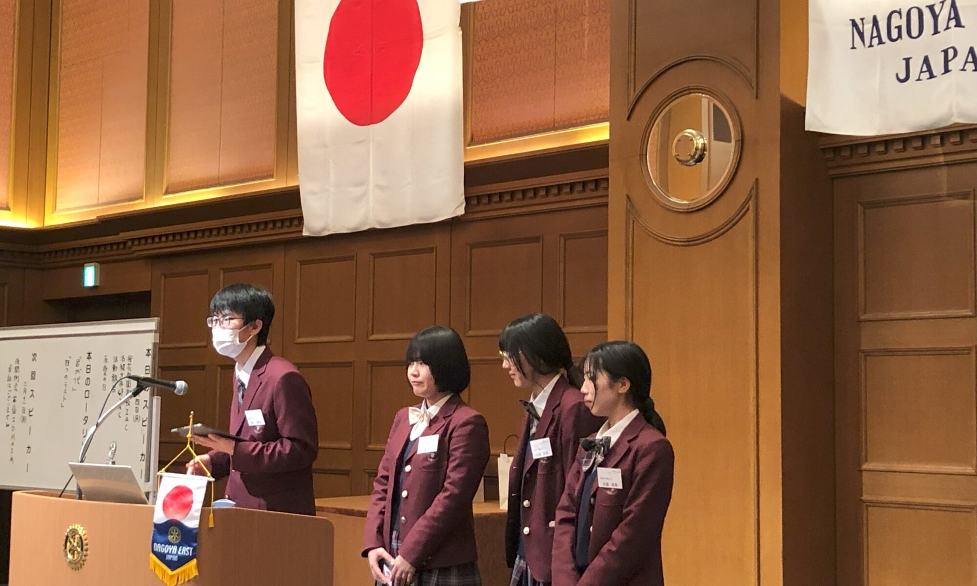 名経大市邨インターアクトクラブを支援してくださっている「名古屋東ロータリークラブ」の例会にて、活動を報告しました。