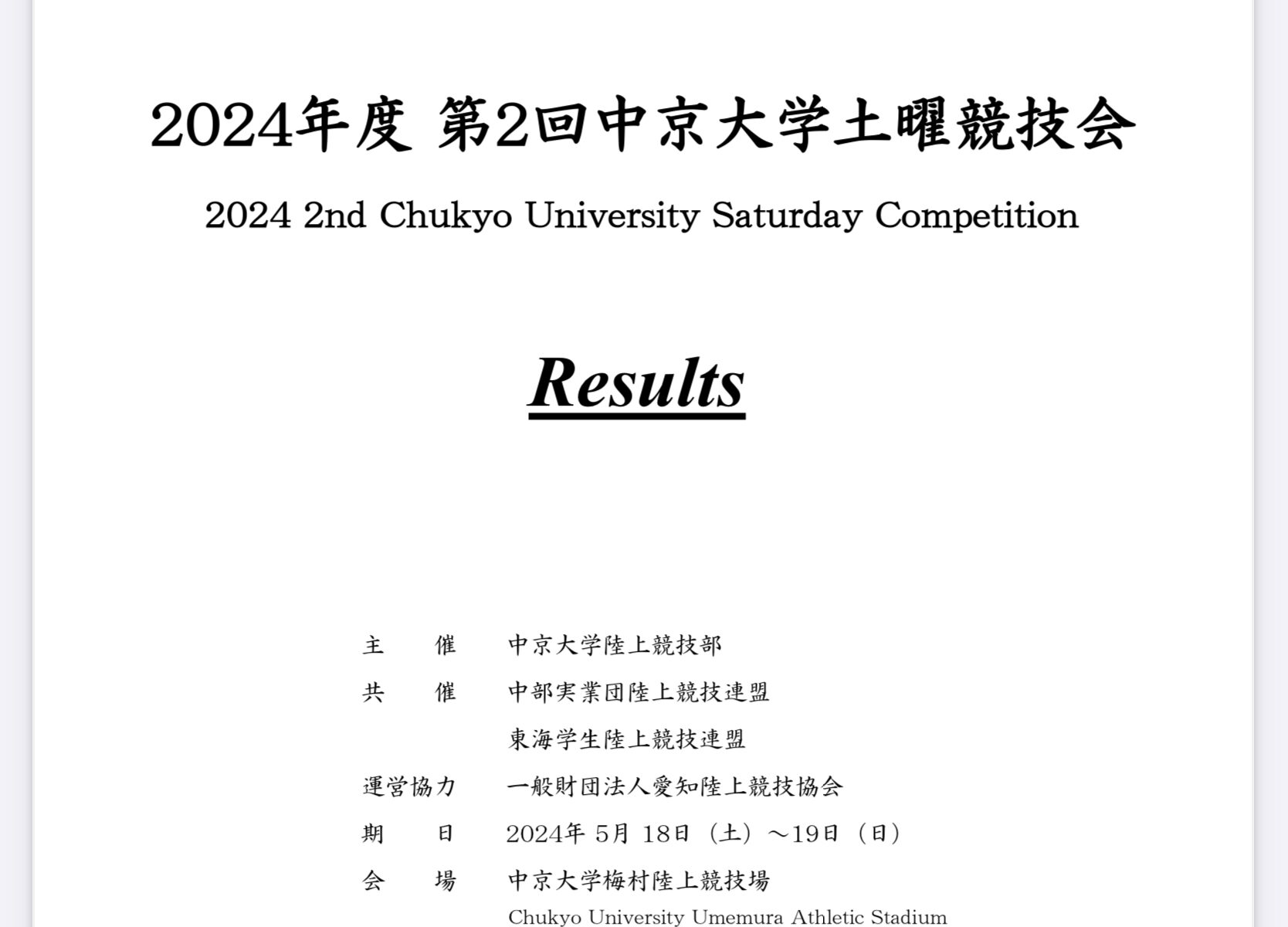 ◼️中京大学土曜競技会_5月18日(土)