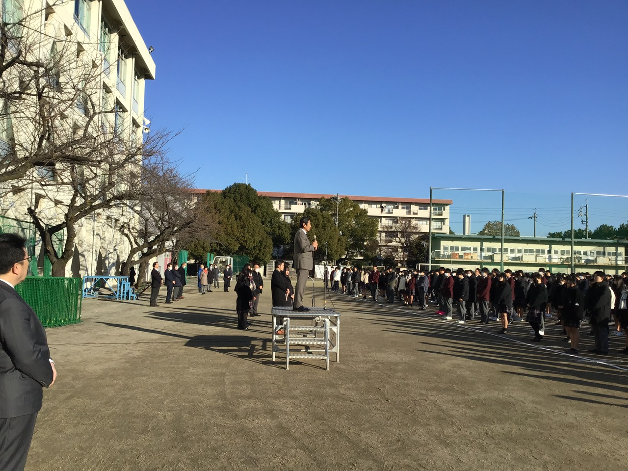 1月9日(火)、中・高で第3学期 始業式がグランドにて行われました。寒空の下ではありましたが、風は少なく、日なたはぽかぽかとして、抜けるような青空とともに心地よさもありました。