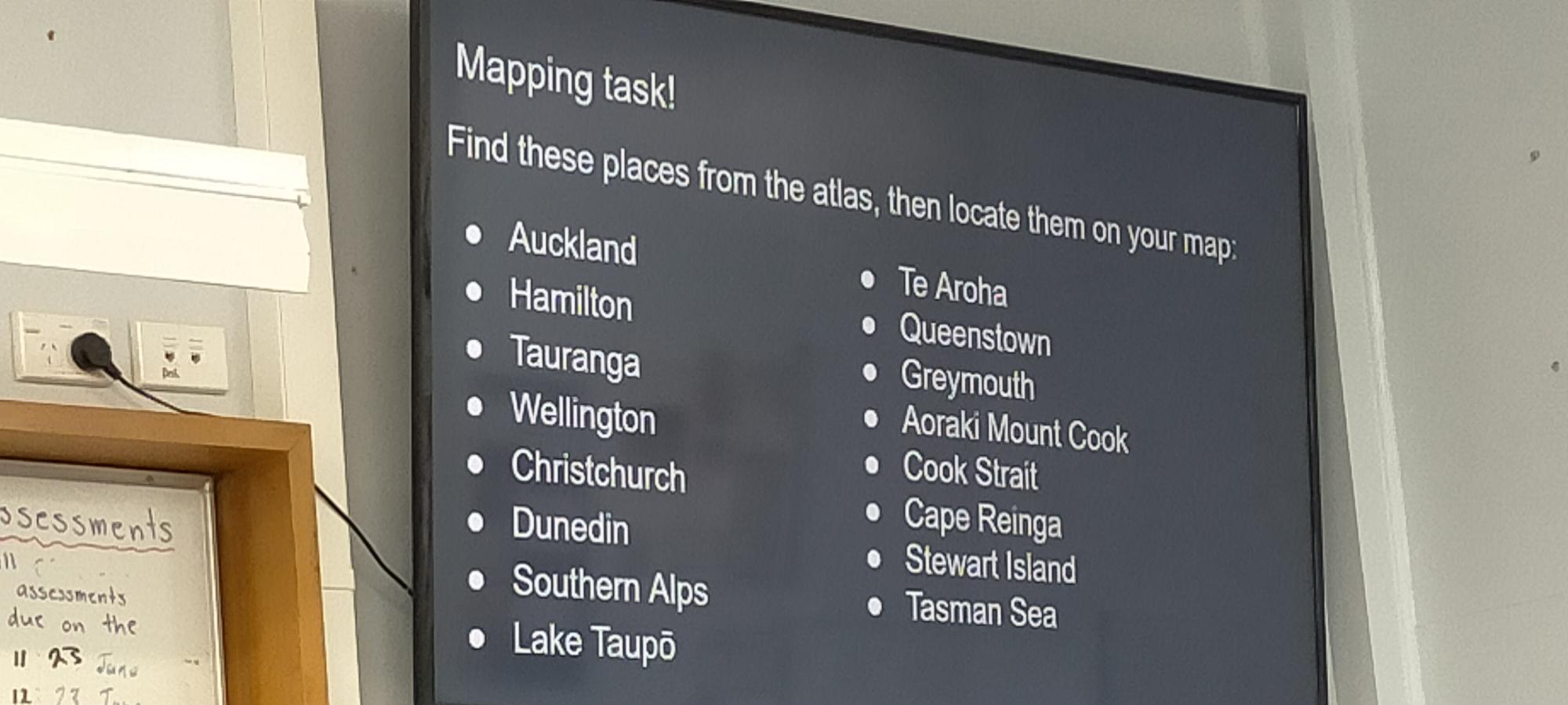 今日はまず、 1時間目にニュー ジーランドについての授業がありました。ニュージーラン ドの山や海などについて学び ました。