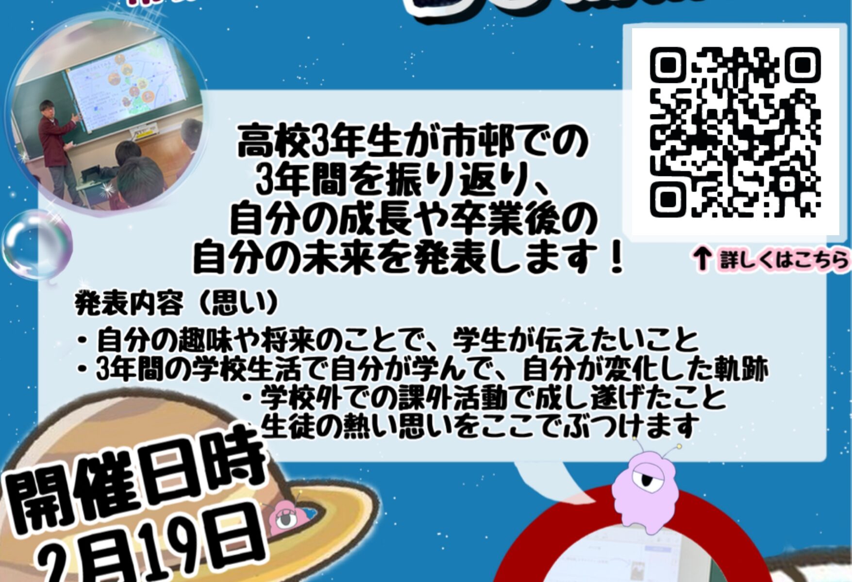 内容: 本校高校3年生による3年間の探究発表(発表形式は任意)