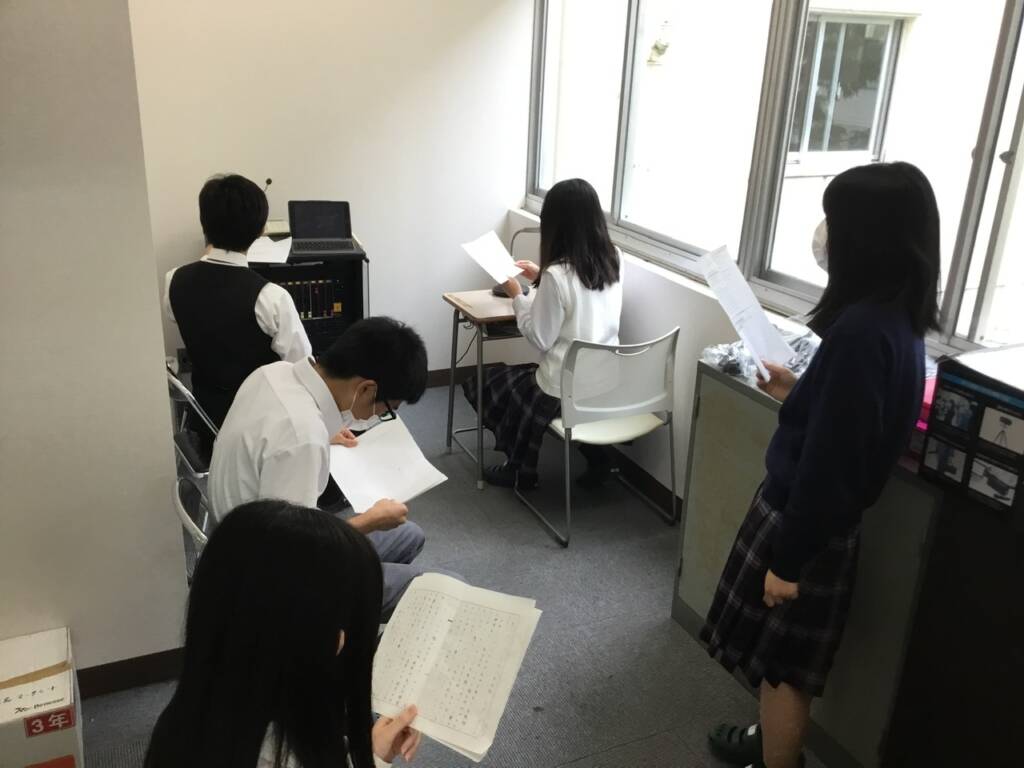 全校放送にて、生徒会役員候補者が1名ずつ、信任されたら実現したいことや、生徒会活動に対する意気込みを自らの言葉で堂々と語っていました。