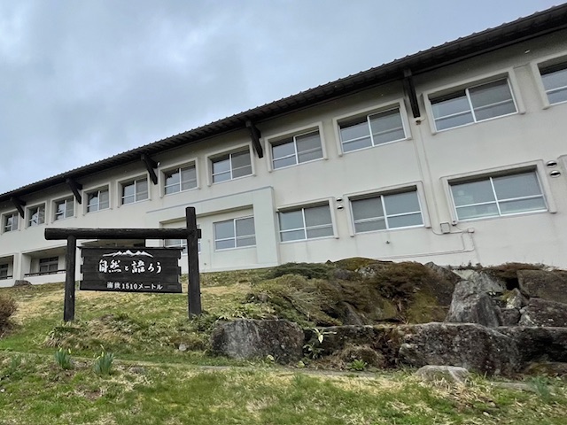 乗鞍青少年交流の家に到着しました。現地も雨、気温は13℃ですが、施設の周りには、ちらほら雪の跡が残っています。バス内での昼食を終えたら、施設に入所して、いよいよ始まります。