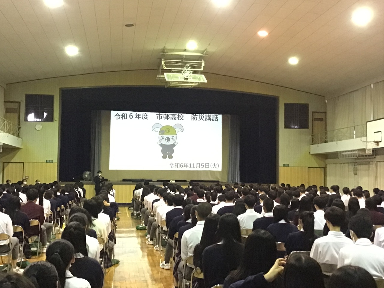 11月5日(火)、高校2年生は6時限目に講堂にて防災講演を実施しました。千種区役所の方、災害ボランティアの方から、災害時への備えだけでなく、自助・共助・公助といった災害時に私たちが出来ることについてのお話を聞くことができました。