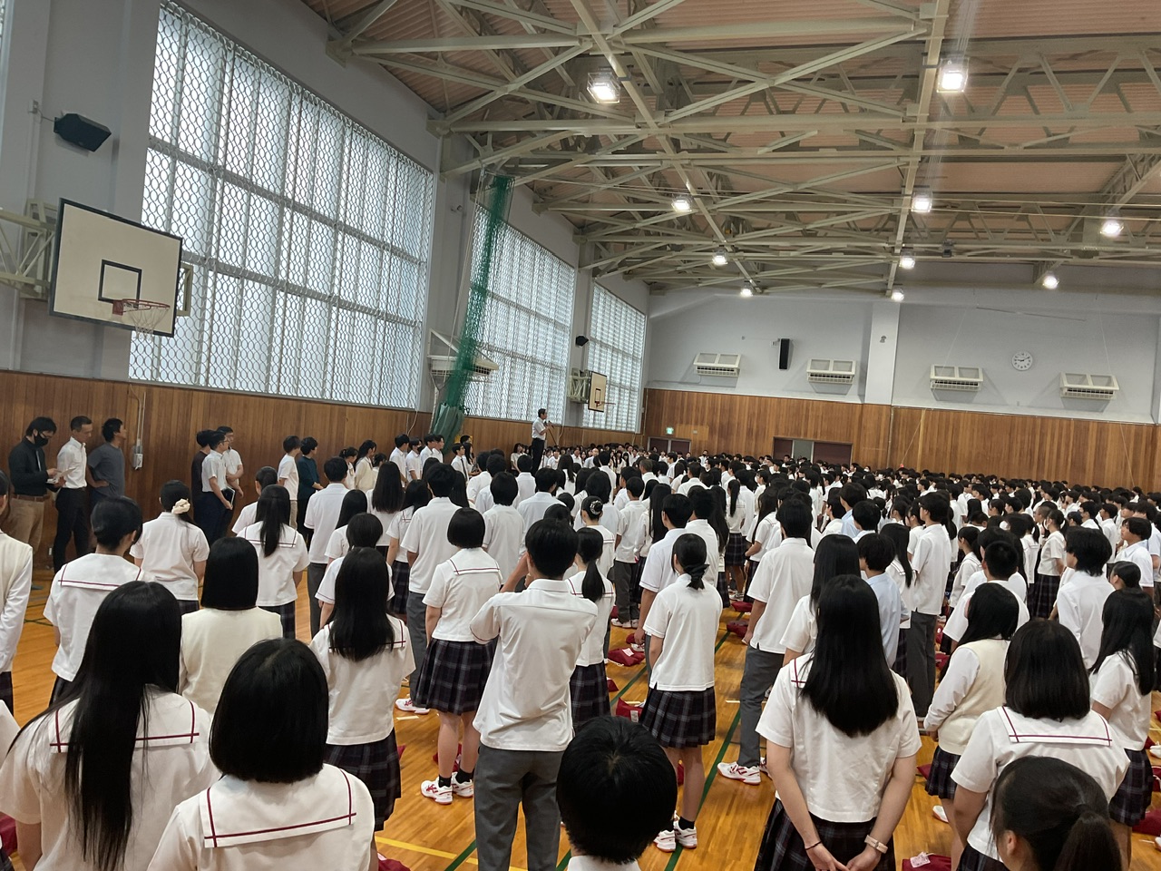 9月1日(月)、いちむら中高では、令和7年度 第二学期 始業式を行いました。中学校は講堂で、高校は記念体育館で、いずれも空調完備の涼しい屋内で式典を実施しました。式では校歌斉唱に引き続き、校長先生のお話がありました。
