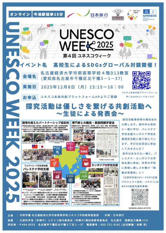 名古屋経済大学市邨高等学校は、文部科学省主催「ユネスコウイーク2025」(12月5日~11日)の一環として、