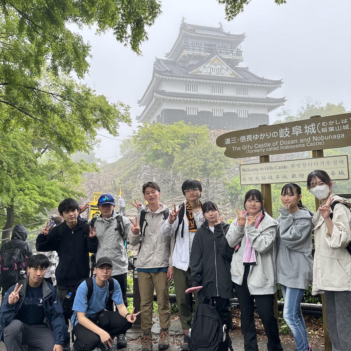 5月山行を岐阜市の金華山(岐阜城)で実施しました。今回の山行は新入生歓迎ハイクを兼ねています。先輩たちが新入生を歓迎しました。前日は嵐のような天候でしたが、昼前に雨が止むという予報でしたので実施を決行しました。ほぼ霧のような雲の中でしたが楽しく歩きました。