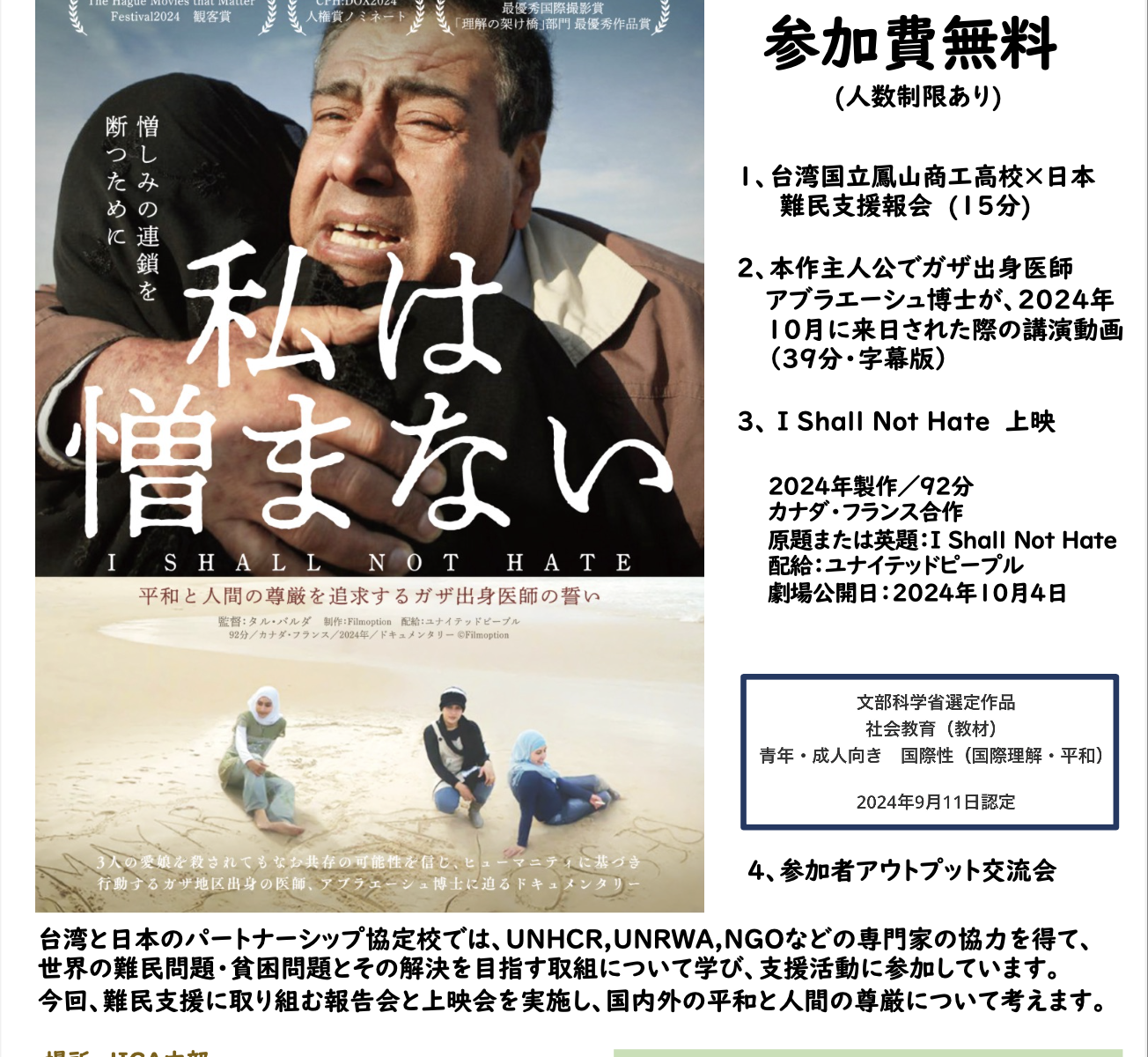 市邨高校では、UNHCRやUNRWA,JICAやNGOの学びを活かし、企業や地域の方の応援をいただき、戦争で逃れた女性や子ども支援、カンボジアの公立学校支援を行い、心を繋ぐ活動を行なっています。