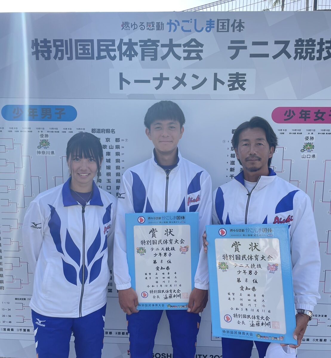 9/21(土)〜24(火)に佐賀県・サンライズパークテニスフィールドで開催される第78回国民スポーツ大会SAGA2024に、愛知県代表として3年生の後藤章一郎、津田梨央、成田百那の3名が出場します。高校生活最後の団体戦としてベストを尽くすだけではなく、今までテニスを通じて色々なサポートしていただいた愛知県テニス協会に恩返しができるよう精一杯頑張ります。応援よろしくお願いします!