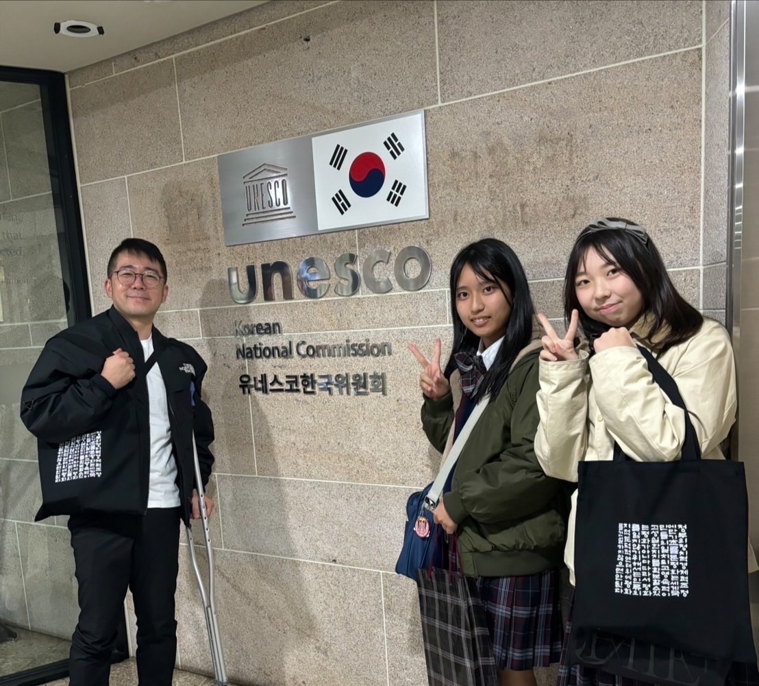 11月22日に、ユネスコスクール担当の社会科・松野至(いたる)先生と国際支援に取り組んだ生徒代表が、活動の一環として韓国のユネスコ委員会を訪問しました。