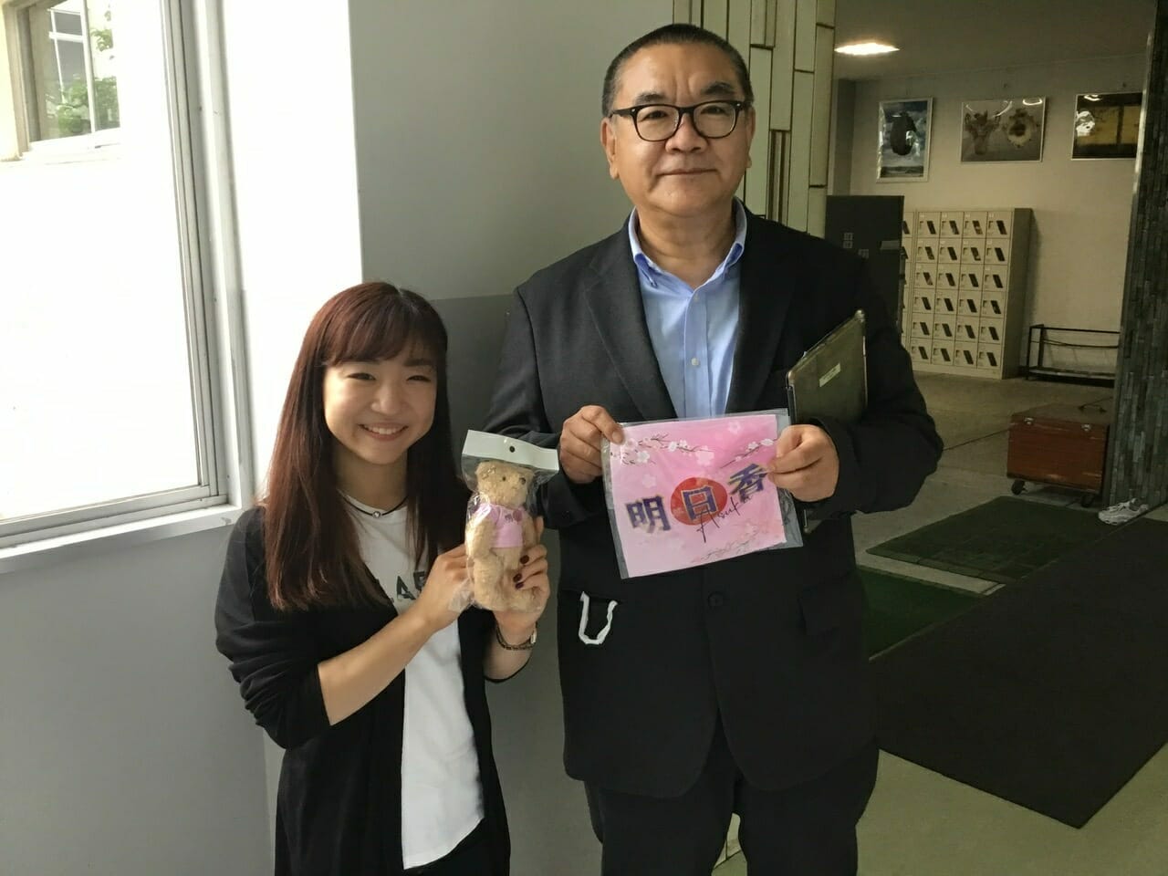 当日はテレビ局が取材に訪れ、各局のニュース番組あるいはネットニュースなどでも、その模様が取り上げられました。当時担任だった横地先生、学年主任だった竹内先生がインタビューを受け、在学中の吉永選手のエピソードなどを語っていました。
